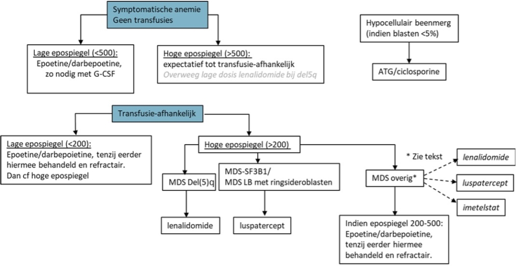 MDS is een heterogene ziekte met een prognose voor overleving die kan variëren van enkele maanden tot vele jaren. De behandeling varieert van een afwachtend beleid en ondersteunende zorg met transfusies tot een in opzet curatieve behandeling met een allogene hematopoëtische stamceltransplantatie. Sinds het verschijnen van de laatste MDS richtlijn in 2013 zijn de diagnostische mogelijkheden, prognosticering en therapeutische opties verfijnd en uitgebreid. In deze richtlijn uit 2025 worden aanbevelingen gedaan voor diagnostiek, prognosticeren en therapie. Deze aanbevelingen volgen voor een belangrijk deel de Europese richtlijnen zoals opgesteld door leden van het MDS-right programma. Deze richtlijnen worden ondersteund door de EHA en MDS foundation.1 (zie website: MDS Europe – Patient management (mds-europe.org)
