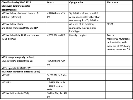 21. Komrokji RS, Lanino L, Ball S, Bewersdorf JP, Marchetti M, Maggioni G et al. Data-driven, harmonised classification system for myelodysplastic syndromes: a consensus paper from the International Consortium for Myelodysplastic Syndromes. Lancet Haematol 2024;11(11):e862-e872.